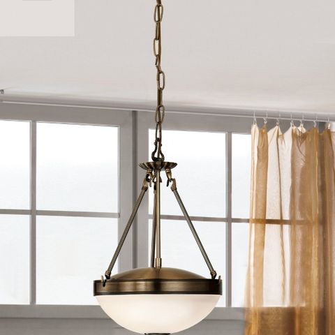 Pronssinen valumetallirunko ja valkoinen satiinilasi. Asennuspistotulpallinen vähän rikki.