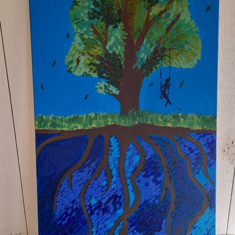 Universumin ydin, 100x100 kokoinen (cm) akryylimaalaus puukiiloihin kiristetylle kankaalle. Ei ole kehystetty. Saa ripustettua seinälle sellaisenaankin ilman kehyksiä.