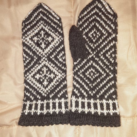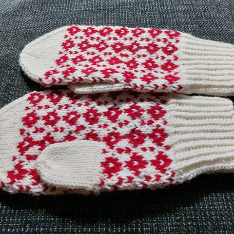 Lämpimät kirjoneulevanttuut, naisen/nuoren käteen.