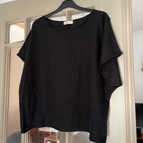Japanilaisen Sonny Blackin (Urban Researchin myymä) musta, midimittainen rento kesämekko, pellavasekoitetta. V-pääntie hapsullisilla koristenauhoilla, rento malli, polven kohdalla kaistale läpinäkyää materiaalia. Ostettu Japanista tänä kesänä, muttei valitettavasti sopinutkaan minulle. Hyväkuntoinen. Yhden koon, sopii mallinsa ansiosta monen kokoiselle, kts. mitat.