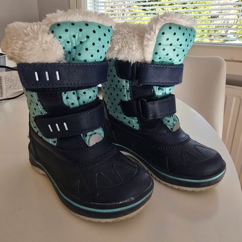 Myydään lasten vuorelliset maiharit, väri musta-ruskea-beige. Koko 23, pohjallinen 15,5 cm. Pitävä pohja. Sivussa vetojetju.