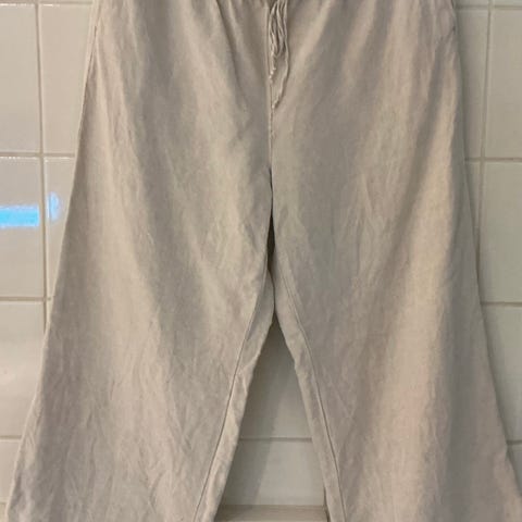 Pellavan väriset housut kuminauhavyötäröllä. Kokoa L/XL