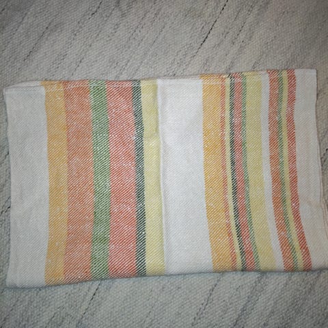 Suomalaista designia kierrätyspuuvillasta saunan lämpöön! Ks.kuvan ohjelappunen. Kuviointi/ kudonta muistuttaa vohvelia. Laudeliina pituus 170cm ja leveys 45cm.