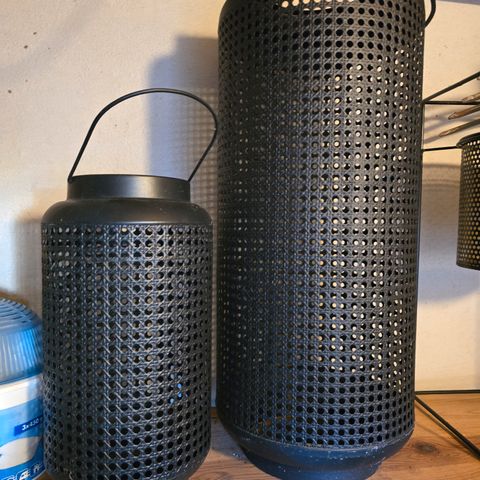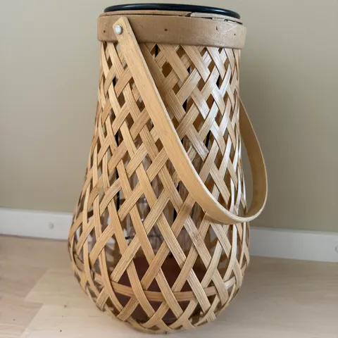 Iso rottinki lyhty. Korkeus 39 cm halkaisija leveimmästäkohdasta 34 cm