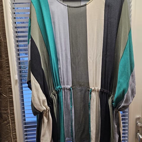 Kuvan tummansininen jossa valkoiset pallot paita nappilistalla. Ei reikiä tms. Ehjä.