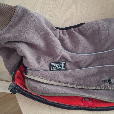 Myydään koiran kokopuku fleecevuorella koko 45 cm.