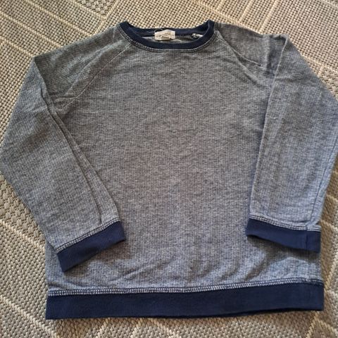 Käytettyinä ostettuja collegepaitoja koossa 110/116. Tummansininen paita isoa/oversize-kokoa. Harmaa Newbien paita tyypillisesti pienempää kokoa.