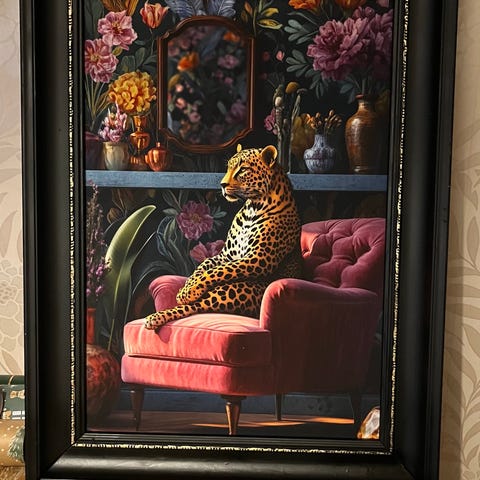 Puuvillakankaalle painettu kuva ja teksti kehystetty tauluksi, päällä pleksi. Koko n. 32×22 cm. Ripustuslanka valmiina.