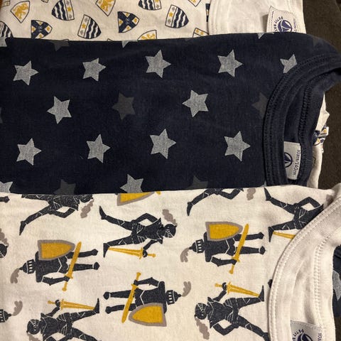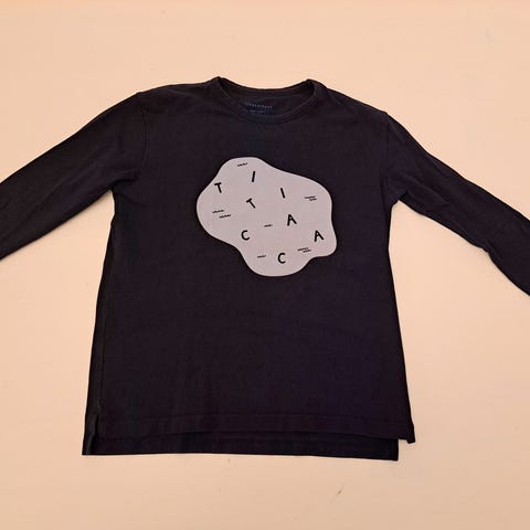 Myydään erittäin hyväkuntoinen Tinycottons paita, jossa Ranska-teema eli croisantteja, joilla baskeri päässä.