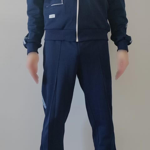 Hyväkuntoinen tuulipuku/verkkari takki ja housut setti oletettavasti kasarilta. Koko s-m