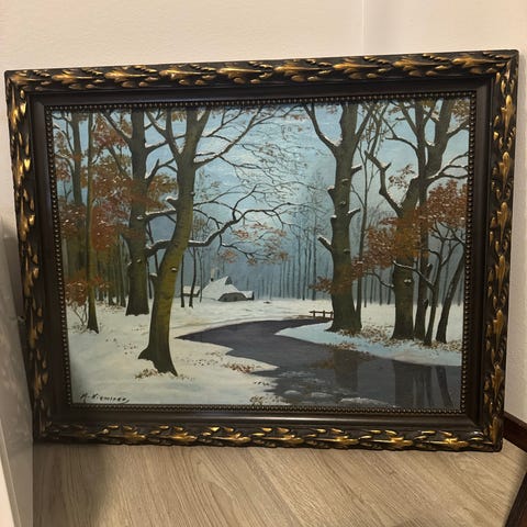 Koiviston öljyvärimaalaus. Virheetön. Talvimaisema. 83 x 73
