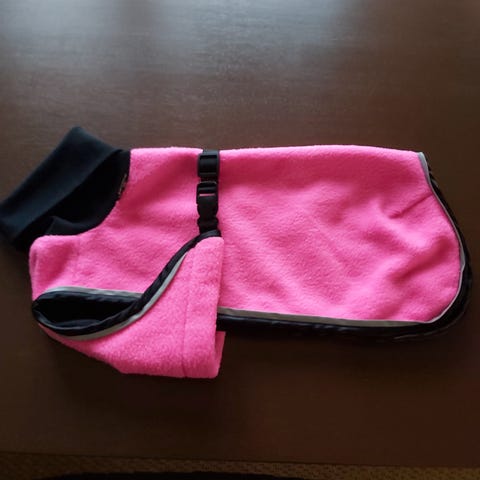 Kuvien mukainen Suomessa valmistettu laadukas, kestävä ja näyttävän värinen koiran softshell takki. Hengittävä ja tuulenpitävä sekä vettä hylkivä. Selän pituus noin 38-40 cm. Joustava kaulus ja leveät jalkalenksut. Vuori on liukasta kangasta, joka ei takkuunnuta turkkia. Vatsakappaleessa on joustava ja säädettävä kiinnitys. Heijastavaa nauhaa löytyy myös.