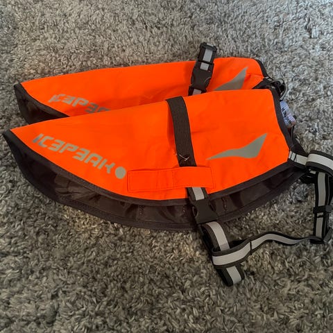Kuvien mukainen erittäin voimakkaan oranssi ötökkäliivi. On huomattavasti voimakkaampi mitä kuvissa. Näkyy erinomaisesti metsässä ja hämärässä. Heijastavia yksityiskohtia, kiinnitys kahdella tarranauhalla.