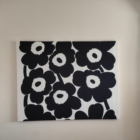 Myydään Marimekon Kissanminttu kankaasta tehty suurehko kangastaulu.