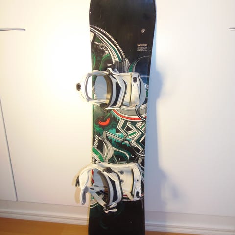 Myydään hyväkuntoinen Warp lumilauta Flow takaa ladattavilla siteillä.