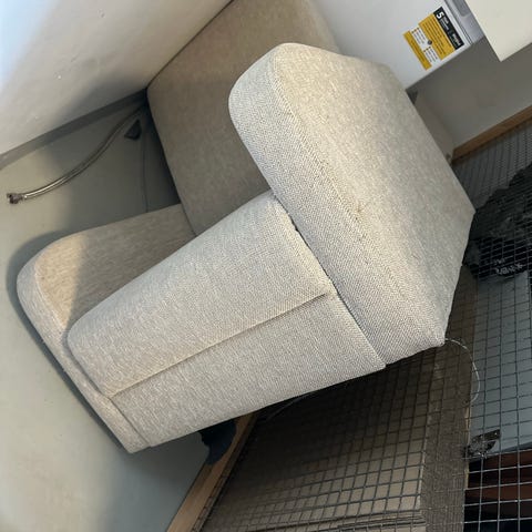Kuvan nojatuoli on ollut hyvin vähäisellä käytöllä. Ikäisekseen varsin hyväkuntoinen.