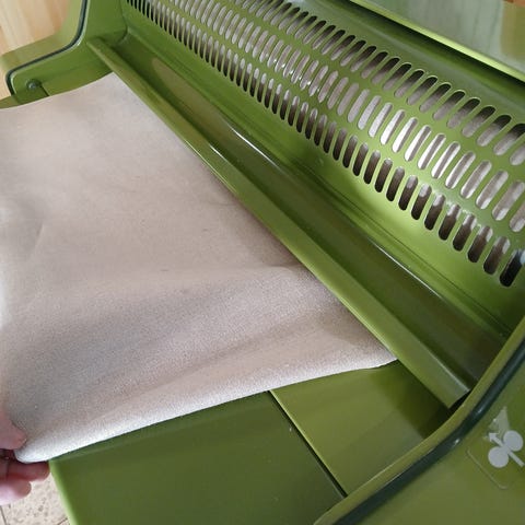 Upo mankeli jossa varastoinnin aikana tullut vähän pintavikaa, muutama valkoinen maaliroiske ja ruostetäplä. Toiminnaltaan kuitenkin lähes käyttämätön, ja liinat todella hyvässä kunnossa. Turvaluukun rajakytkin on korjattu vuosituhannen vaihteessa kun mankeli seisoi nurkassa eikä lähtenyt käyntiin. En tiedä kuinka kauan se siinä oli ollut mutta pölyn määrästä päätellen kauan. Mankelia ei ole senkään jälkeen käytetty muuten kun kokeilin että toimii 25 vuotta sitten ja nyt uudelleen. No problem. Noutokin onnistuu.