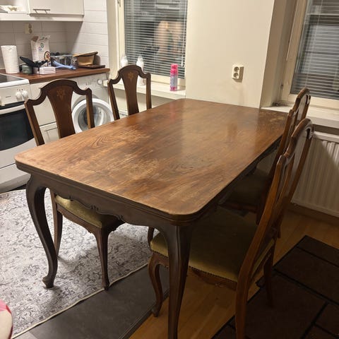 Ruokapöytä ja 4 tuolia, jugend