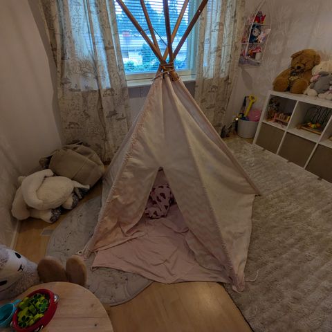 Lasten harmaa-vaaleanpunainen Alice & doc leikkiteltta. Ostettu aikanaan jollyroomista ja ollut yhdellä lapsella käytössä.
