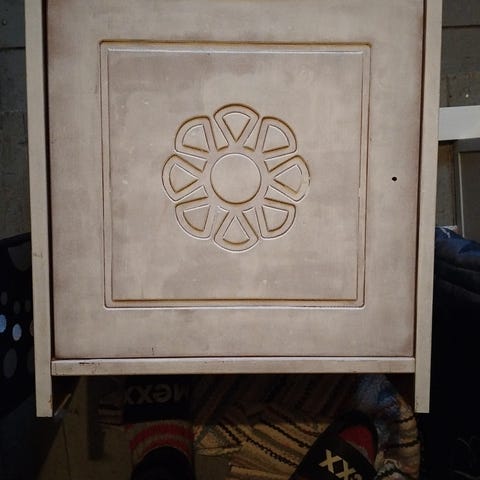 Myydään mäntyinen yöpöytä, jalat maalattu, kansi kokopuuta