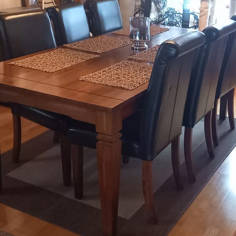 Pöytä ja 6 tuolia.