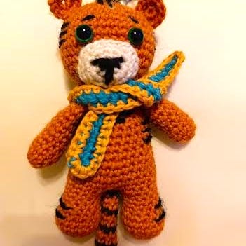 Neulottu avaimenperälelu - koriste laukkuun tai reppuun. Käsinneulottu virkkuukoukulla puuvillalangasta, sisällä on keinokuitutäyte. Ihana lahja ystäville. Lelun koko on 12 cm.