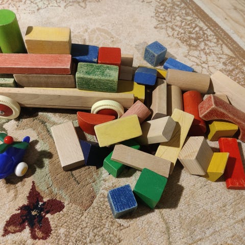 Puinen auto jossa kantokahva ja useita erilaisia työkaluja