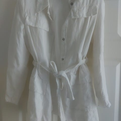 MIAM musta pellavapaita jossa lyhyet puhvihihat. Etuosassa kaunis röyhelö. Koko 34 ja vastaa mielestäni kokoaan. Kainalo-kainalo 45cm, olka-helma 62cm, ympärysmitta vyötärön kohdalta noin 80cm. 100% pellavaa, joten ei juuri jousta. Kunto erinomainen.