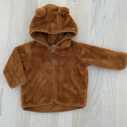 Vetoketjullinen hupullinen tekoturkistakki koossa 68cm