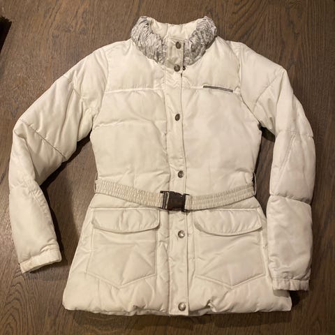 Hyväkuntoinen muhkea Calvin Klein untuvatakki. Koko L. Irroitettava huppu. Useita taskuja; vetoketjulliset sivutaskut ja hihatasku, takin sisällä molemmin puolin povitaskuja yhteensä kolme. Untuvatäyte tasaisesti takissa eikä sitä tule ulos takin saumakohdista. Oikean hihan takana ja vasemman kainalon vieressä edessä pieniä melko huomaamattomia jälkiä joita en ole koittanut poistaa. Takin takaosassa vasemmalla alhaalla kankaan pinnassa pintanaarmua. Näistä kuvat kohteessa. Muutoin siisti ja ehjä.