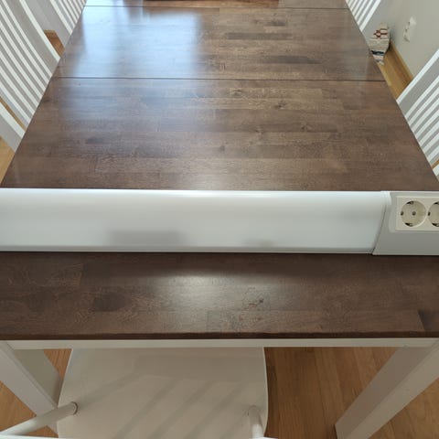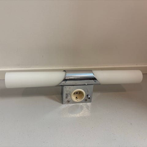 Lival-merkkinen 18 W loisteputkella ja kahdella pistorasialla. Lamppu ehjä. Pituus 75,5 cm.