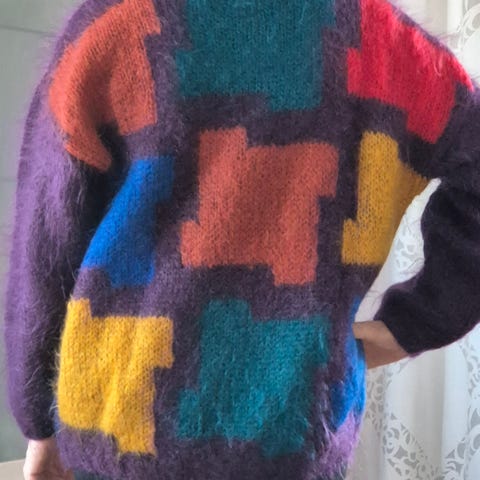 Neule on kohtalaisessa kunnossa, koska kuvia ottaessa kävi ilmi, että neuleen etuosassa on tummia läikkiä/tahroja. En ole yrittänyt putsata. Tämä on huomioitu hinnassa.