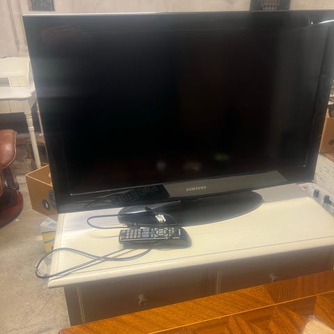 Kauppaan kuuluu, tv, virtajohto ja kaukosäädin