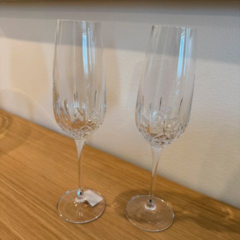 Myydään uudet, paketissa olevat laadukkaat Irlantilaiset Waterford samppanjalasit. Lasit on valmistettu aidosta kristallista.