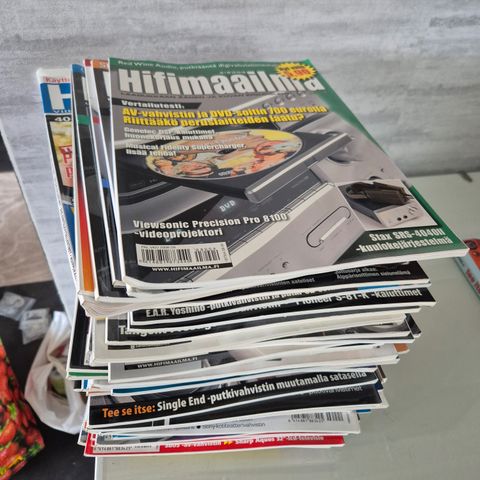 Kuvan lehdet yhtenä kasana. Tuoksuvat tupakalle, kunto laidasta laitaan. Muutama julistekin näkyi olevan pinossa.