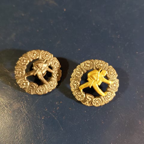 moi olisi pinssejä maatalouskunnia pnssi keskustaliiton pinssi ja sotaveteraaniliiton pinssejä leimoja pohjissa