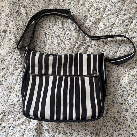 Sisällä yläreunassa vetoketjullinen pikkutasku. Laukku on siisti ja hyväkuntoinen.