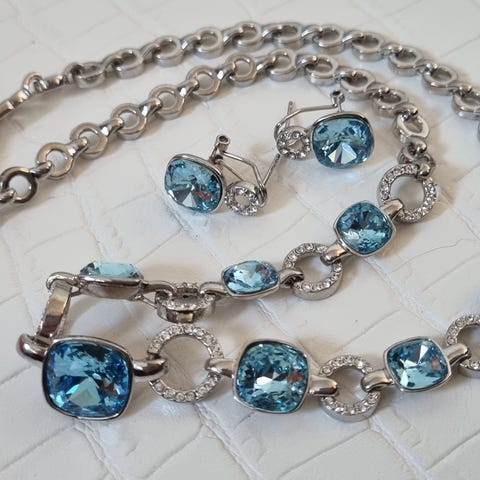 Näyttävä kaulakoru ja korvakorut 4 kpl