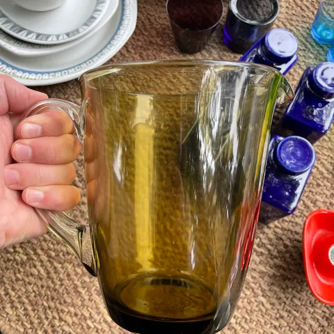 Nuutajärven ruskea Purtilo kaadin, Kaj Franck. Korkeus n. 18,5 cm, halkaisija n. 7,5 cm.