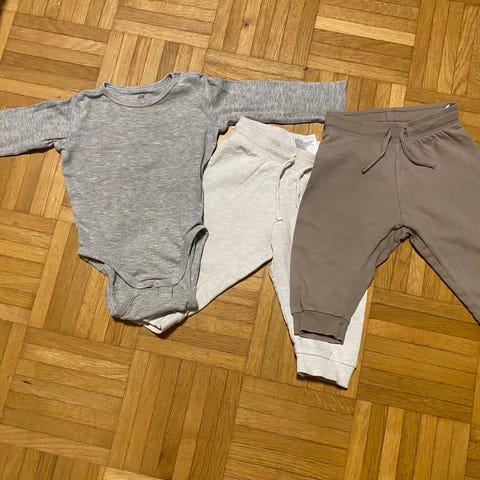 Kotimainen Marlon ja Vendi housut 74, Mom & Bab paita 12 kk
