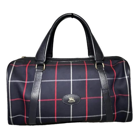 Vintage Burberry Boston -matkalaukku, jolle on ominaista ikoninen Nova Check -kuvio ja ruskeat nahkaiset yksityiskohdat.