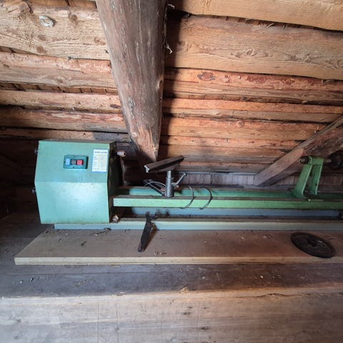 Varaston mukana tullutta irtaimistoa. Omavalmiste puusorvi. Painoa noin 150kg eli saa varmaan muokattua kevyeks metallisorviks. Saa purettua osiksi siirtoa varten. Noin 700mm työmitta. Kuljetus noin 1e/km sinne minne tie ja latausinfra riittää.