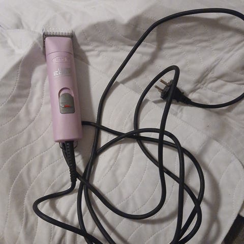 Muutaman kerran käytetty trimmeri. Mukana andis vaihtoterät 1.5mm ja 9.5mm. Mukana myös muoviset kammat 4kpl ja öljyä.