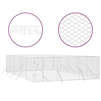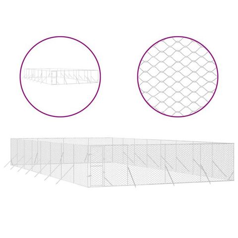 vidaXL Koiran ulkohäkki hopea 8x4x2 m galvanoitu teräs(sku3190463