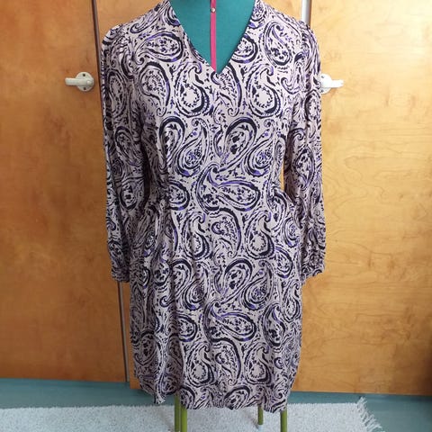 37%viskoosia, 35% puuvillaa ja 28% polyamidia. Rinnanympärys 110cm tai reilumpi. Melko suora malli.