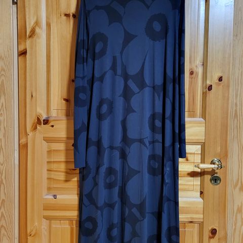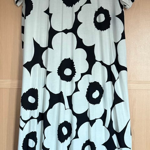 Marimekko Vaula-puuvillatrikoomekossa on rento istuvuus, A-linjainen leikkaus ja Unikko-kuosi. Mekossa on leveä kuosillinen resori pyöreässä pääntiessä ja väljät ¾-hihat.