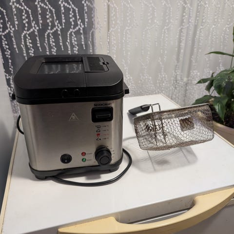 Myyn erittäin hyvässä kunnossa olevan Prego 5,5L XL -ilmafriteerauskeittimen. Siinä on digitaaliset toiminnot ja 7 ohjelmaa eri ruoille. Säädettävä lämpötila 80-200°C. 60 minuutin ajastin. Tarttumaton pinta. Teho 1800W.