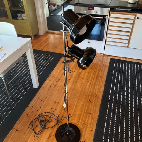 Hyvin säilynyt toimiva 70-luvun Livalin lattiavalaisin.