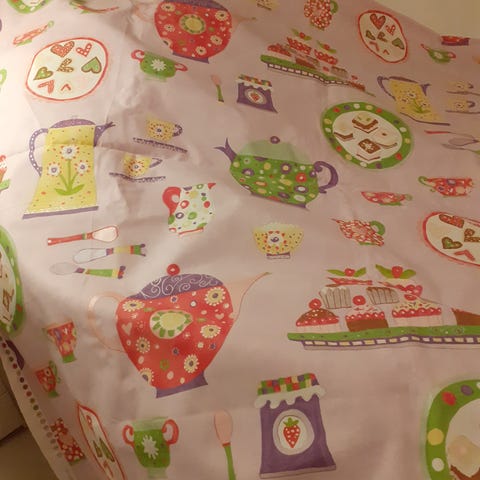 Bichon Frise -kangasta 2 metriä, mutta päästä puuttuu noin 34 x 15 cm pala. Uutena 23 €/metri.