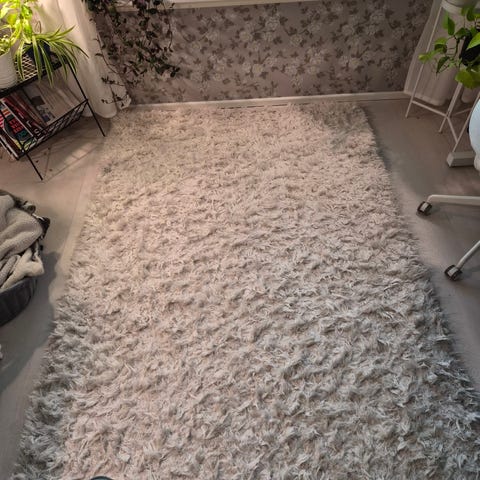 Luonnonkuidusta valmistettu matto, jonka koko on noin 140x60 cm. Väri on beige ja materiaali on punottu luonnonkuitu.